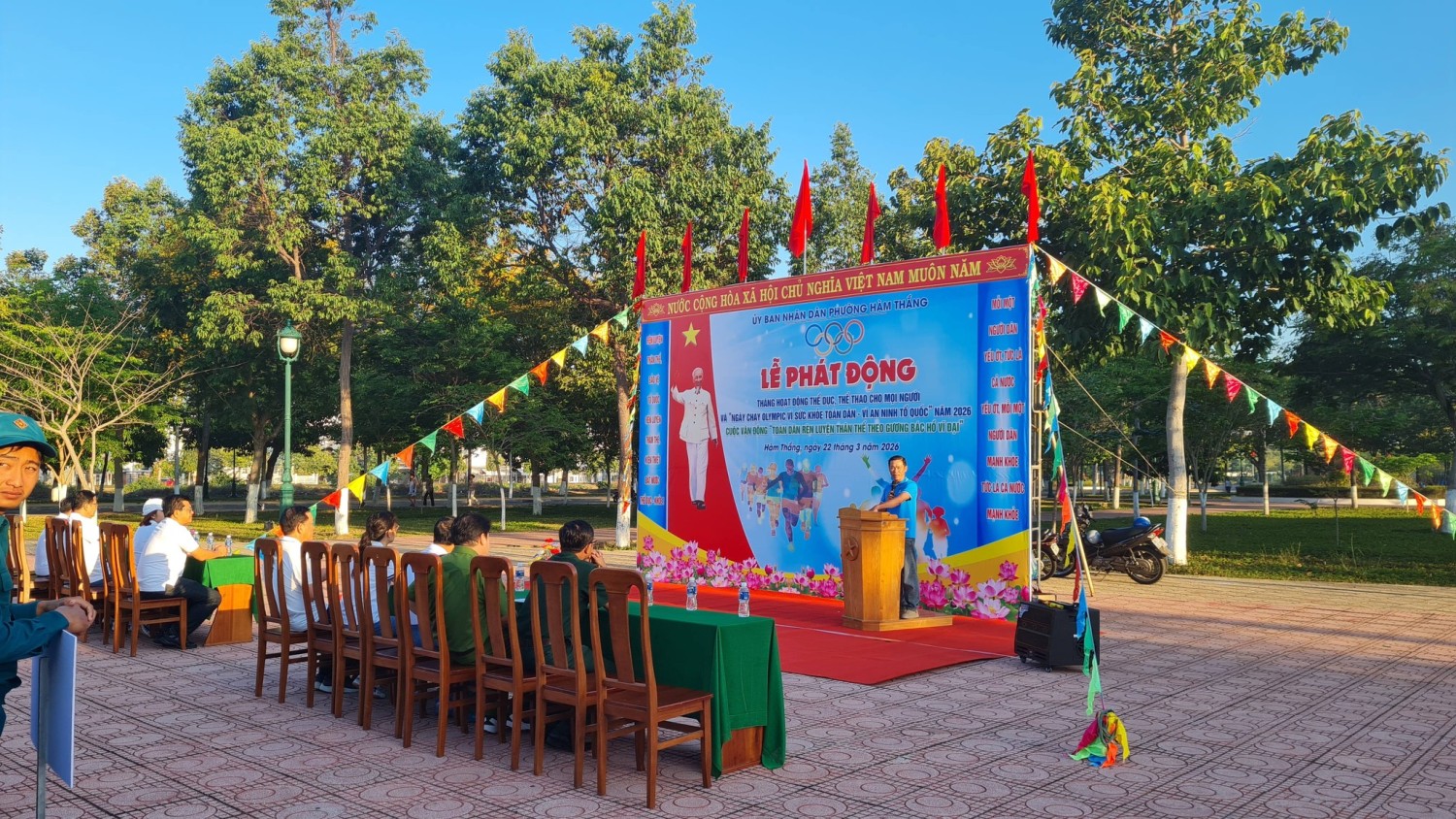 Tại buổi lễ sau chương trình chào cờ, hát quốc ca, đồng chí chủ tịch phường đã đọc “ Lời kêu gọi toàn dân tập thể dục” của Chủ tịch Hồ Chí Minh. Tiếp đến là phát biểu khai mạc của các đồng chí cán bộ phường. Sau đó toàn thể các khối cơ quan, đơn vị cùng đọc khẩu hiệu: “ Rèn luyện thân thể- Bảo vệ Tổ quốc”, “Rèn luyện thân thể- Kiến thiết đất nước”, “Thể dục- Khỏe”.